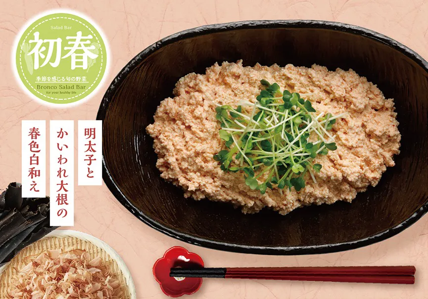 大根、菜の花など冬から春にかけて旬を迎える野菜を使用した、ブロンコビリー自慢のオリジナルサラダをお楽しみください。